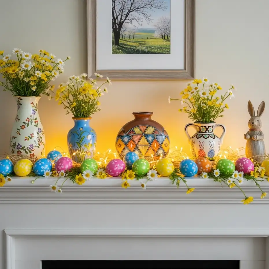 Try choosing a simple color story for your spring mantel. It keeps everything feeling calm and bright, not cluttered.