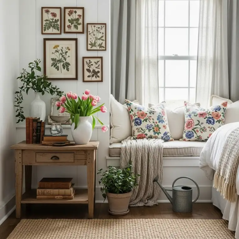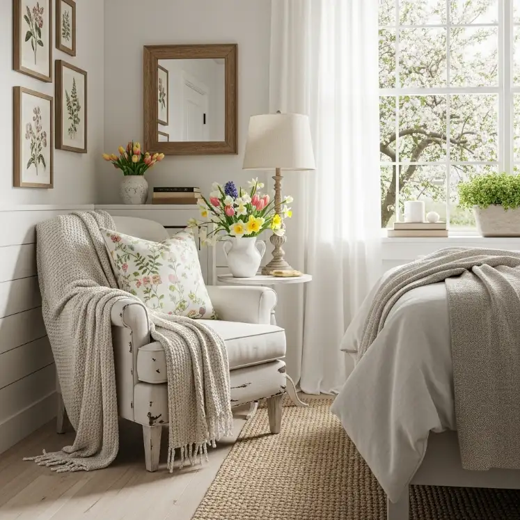 Most ideas lean into farmhouse spring bedroom ideas so you get that soft, welcoming look without needing a total makeover.