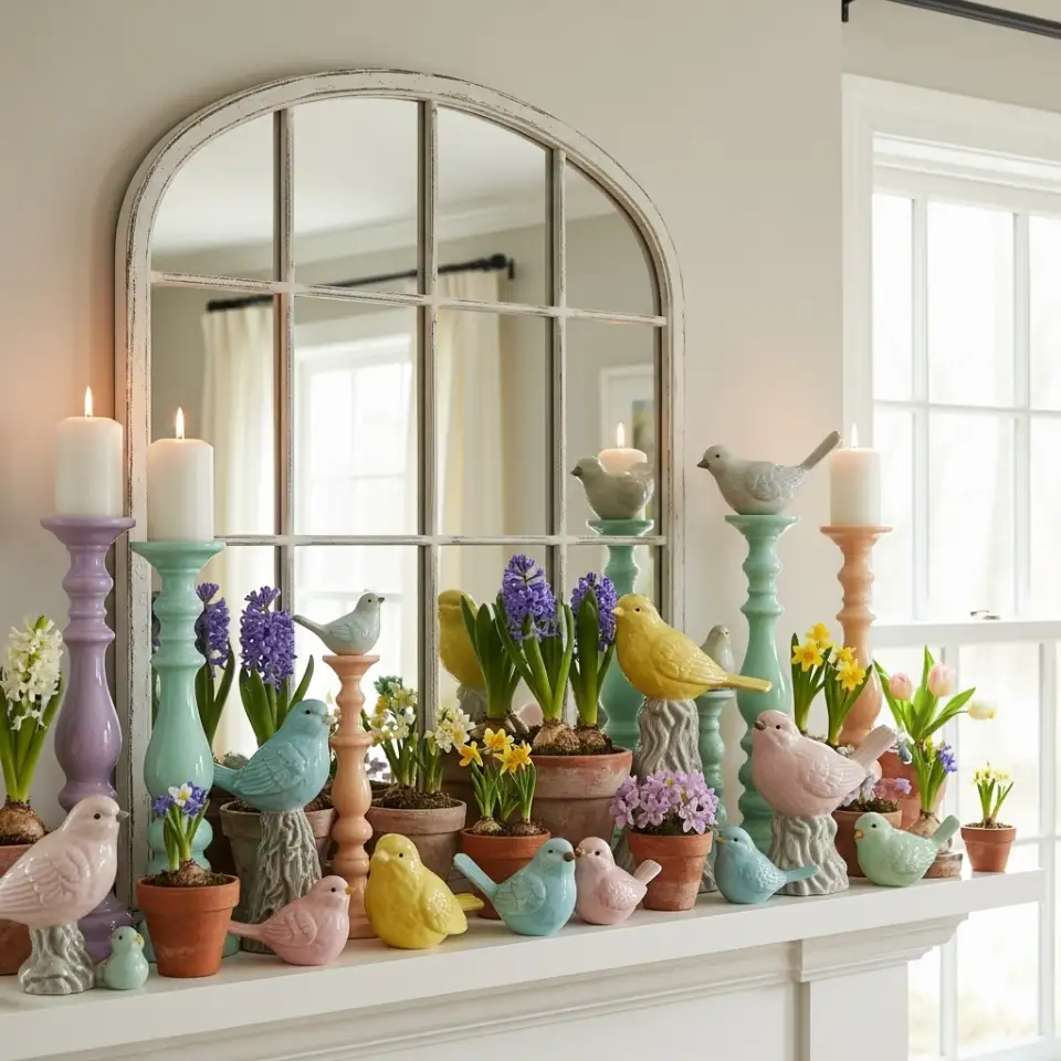 - Maintain your spring mantel so it stays cheerful, not chaotic