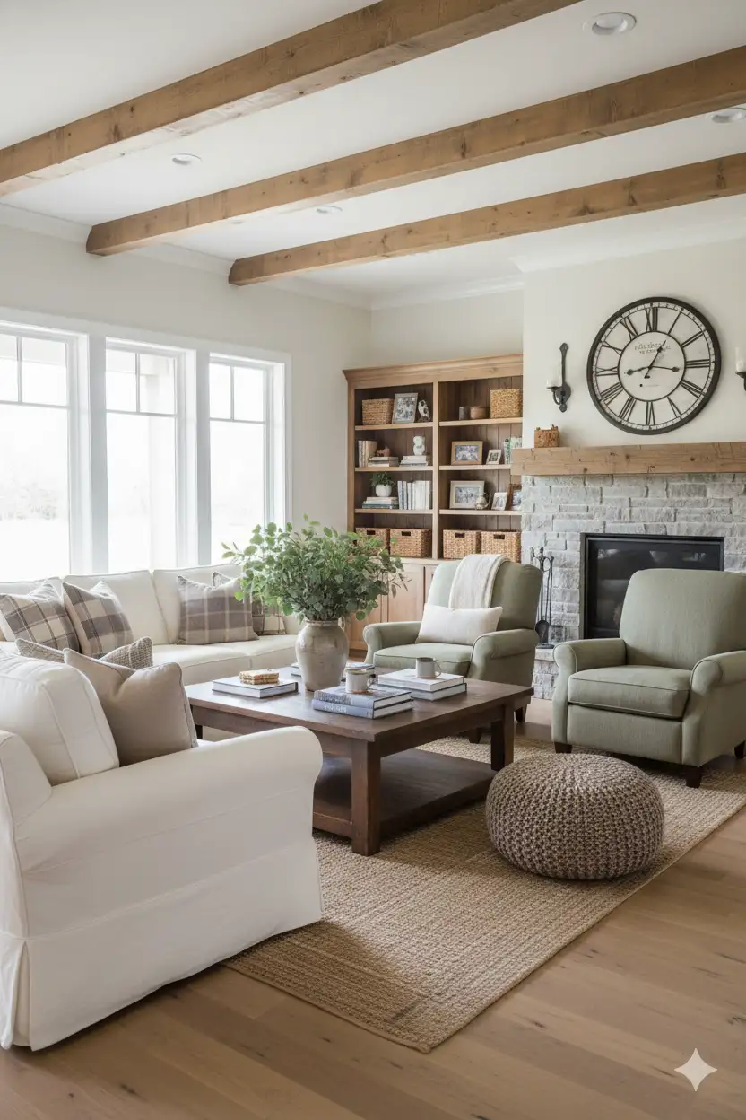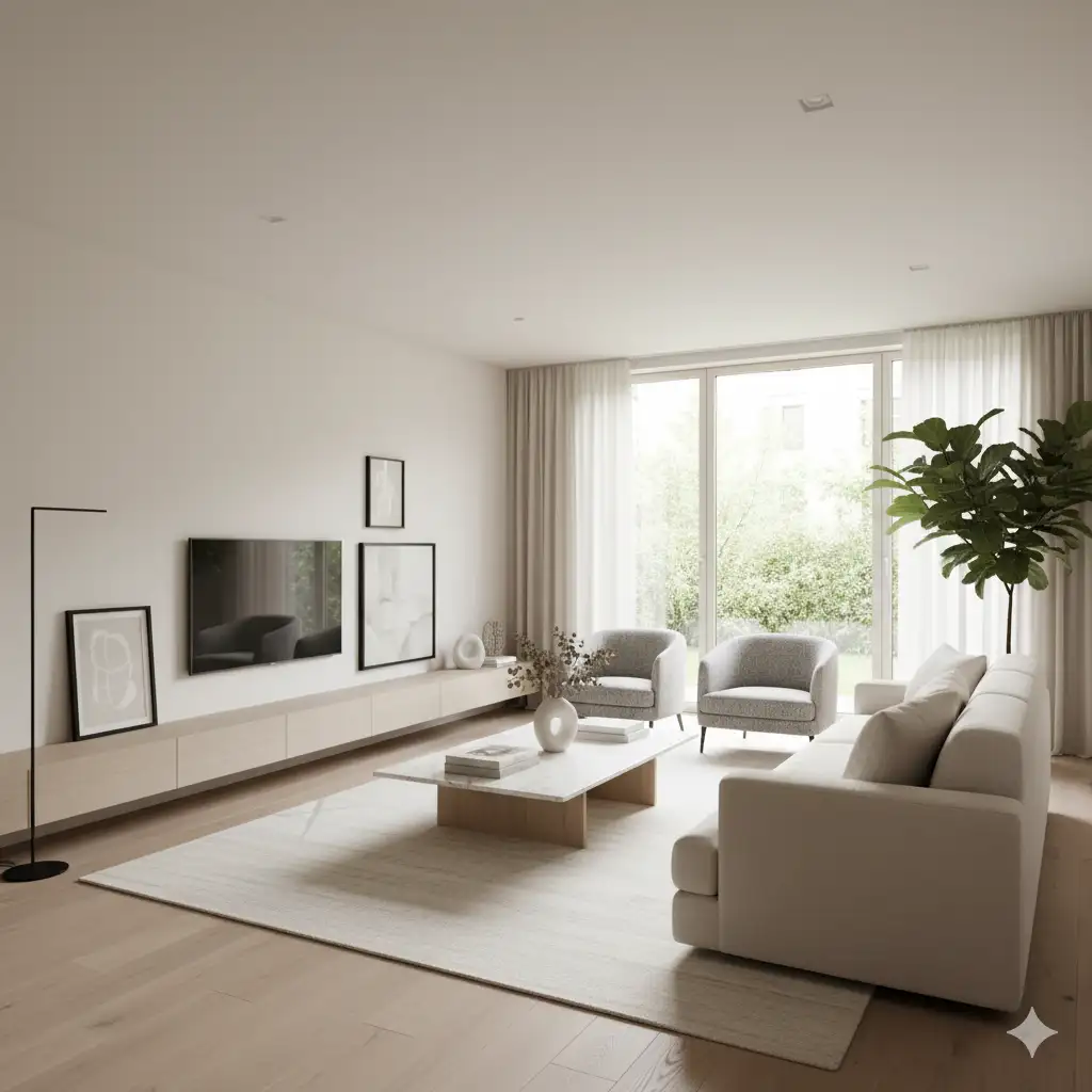 A timeless neutral palette sets the foundation for a chic living room. Shades like warm beige, soft white, greige, and muted taupe create a serene backdrop that pairs effortlessly with most textures.