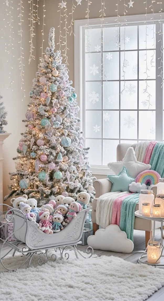A little greenery around the window frame adds a lot without feeling fussy. If the room has a big picture window, I’ll add a small wreath in the center with a long ribbon. For smaller windows, a thin garland on the curtain rod works well. The key is to keep it light so the natural light still comes through during the day.