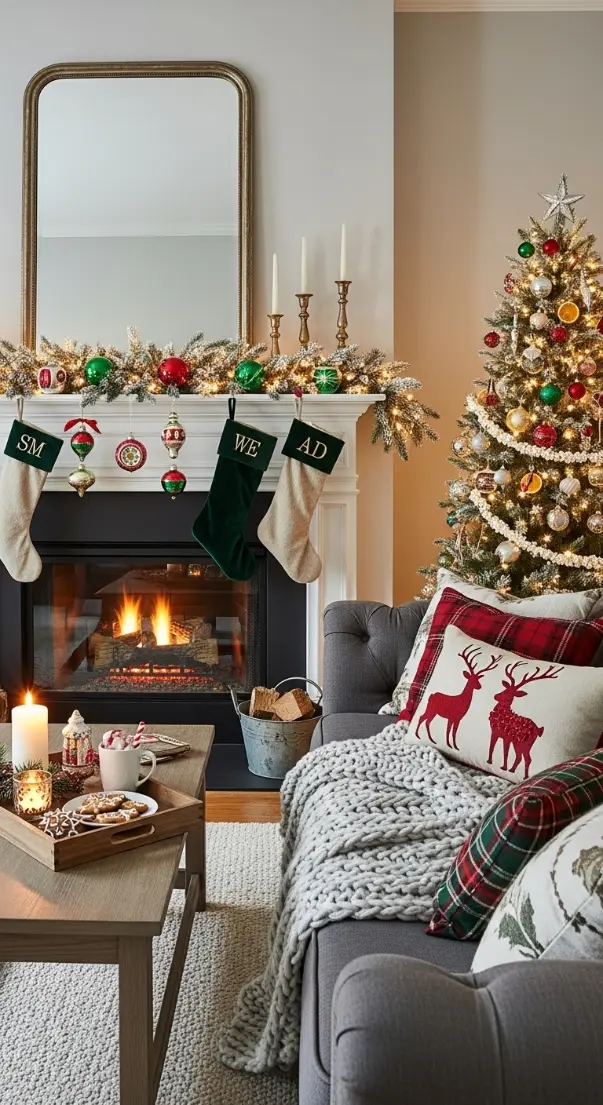Living rooms always feel warmer when there’s something personal mixed in—a handmade ornament, a knitted stocking, or a family decoration that comes out every year. These pieces don’t need to match the rest of the decor. In fact, the little imperfections help the room feel alive and grounded.