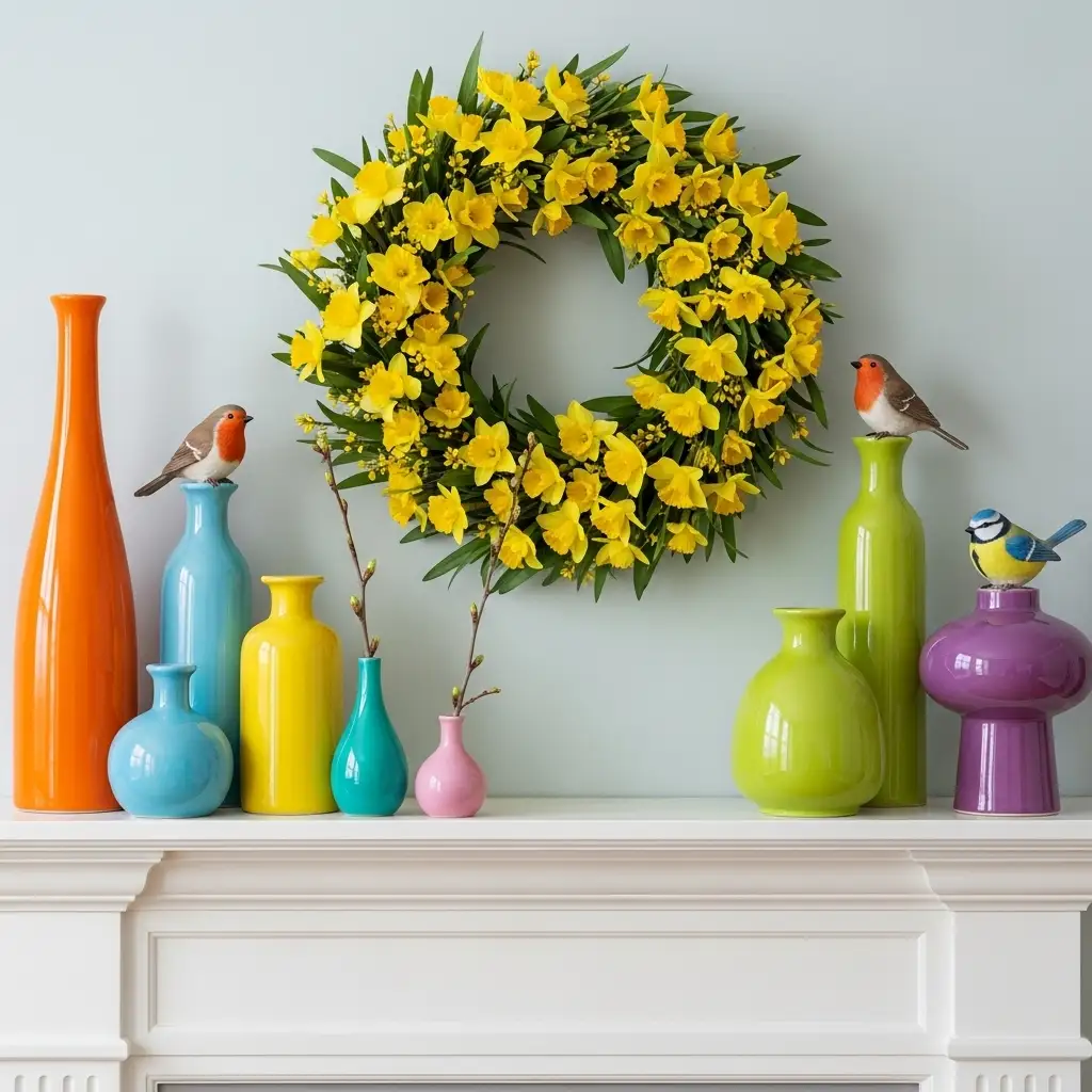 One of the quickest ways to update a dull mantel is to pick a single, larger piece that sets the tone for your colorful spring mantel decor. This anchors everything else and keeps your styling from feeling like a row of small, random objects.