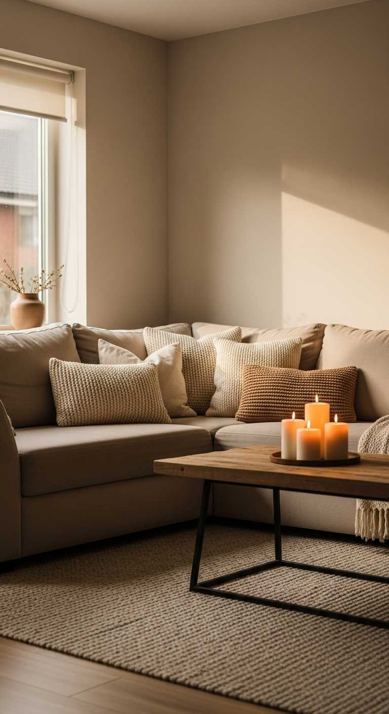 A warm colour palette can transform the entire atmosphere. Instead of stark whites or cool grays, lean toward creamy neutrals, warm beiges, soft browns, and muted earth tones.
