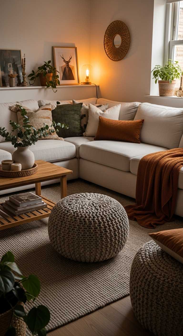 One of the simplest ways to achieve a cozy aesthetic is through layered textiles. Think throw blankets, chunky knit cushions, velvet accent pillows, and soft area rugs. Layering creates visual depth and tactile comfort.