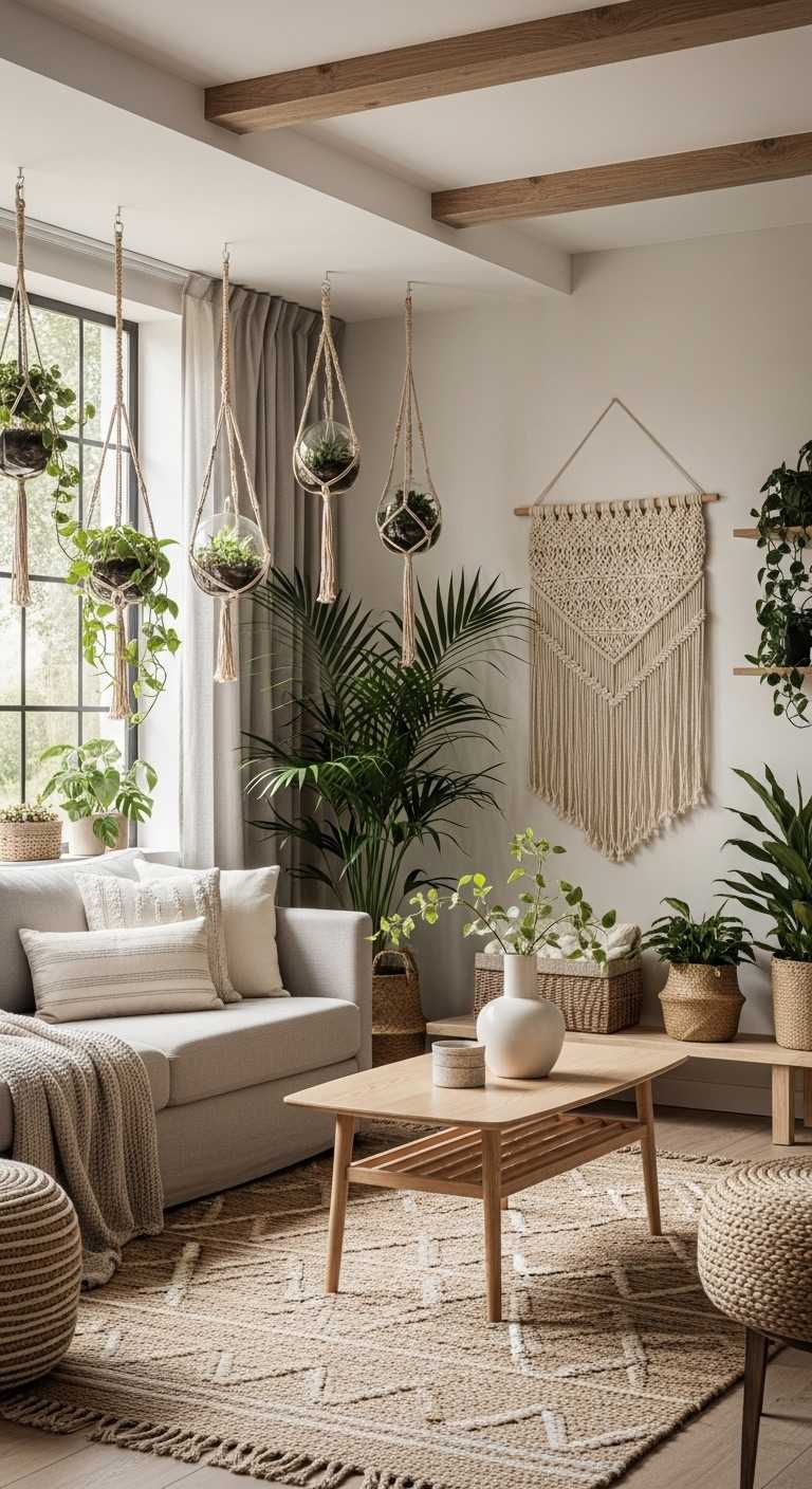 Decor like handmade pottery, rattan baskets, or stone décor objects adds a grounded, earthy warmth.