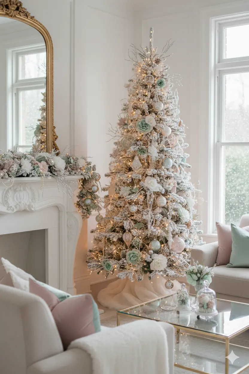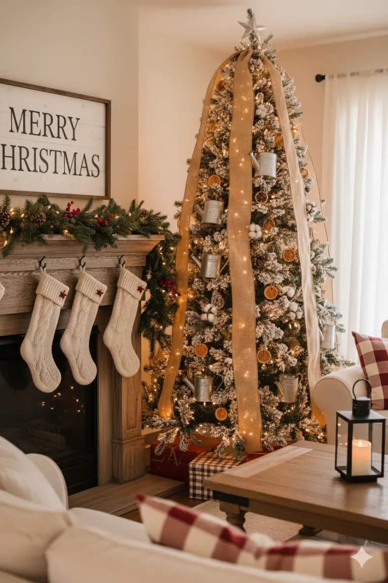 If a full tree feels overwhelming, I’ve used slim or sparse trees for clients who like a cleaner look. They still bring height and warmth, but without taking over the room. Muted ornaments, simple ribbon, and warm lights keep it feeling intentional. This style works well near windows or tighter corners. It’s a calm, understated approach.