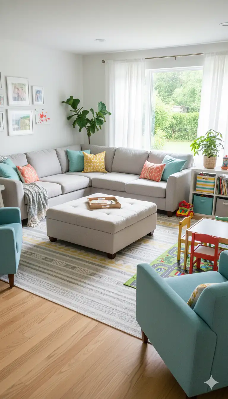 Accent chairs bring personality and balance to your layout. Choose chairs with interesting silhouettes or fabrics that contrast with your sofa.