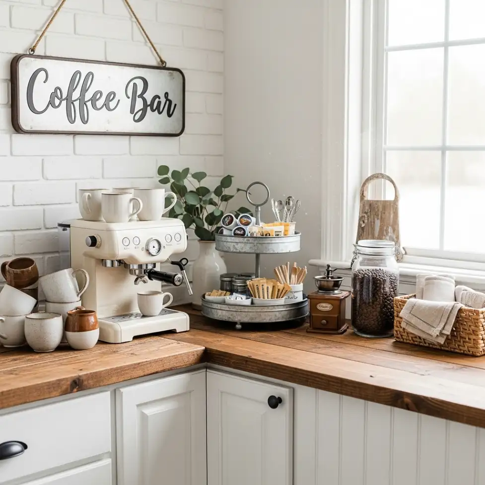 An awkward coffee bar layout can easily disrupt the comfort and flow of a home, especially in spaces where every square foot matters. Yet this often overlooked corner plays a meaningful role in daily routines, offering a moment of pause, warmth, and familiarity. In farmhouse interiors, coffee bars are not just functional stations but emotional anchors that bring comfort through texture, tone, and thoughtful arrangement. When designed well, even the most challenging layout can feel intentional, cozy, and visually balanced. Farmhouse style excels at solving these issues by relying on natural materials, soft color palettes, and practical organization. As an interior design strategist, I focus on solutions that enhance function without sacrificing warmth. This guide shares farmhouse coffee bar decor ideas that transform difficult layouts into inviting spaces that feel connected to the home and effortless to use every day.
