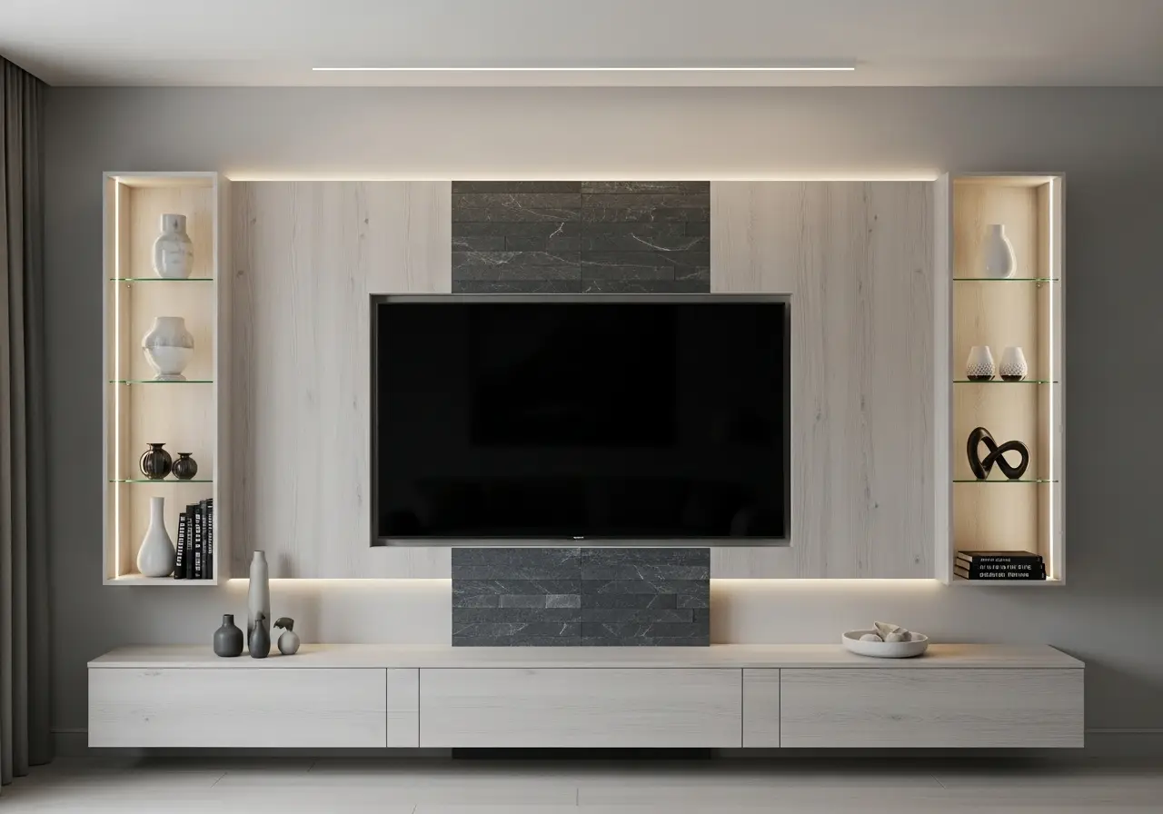 18. TV Wall With Mixed Materials