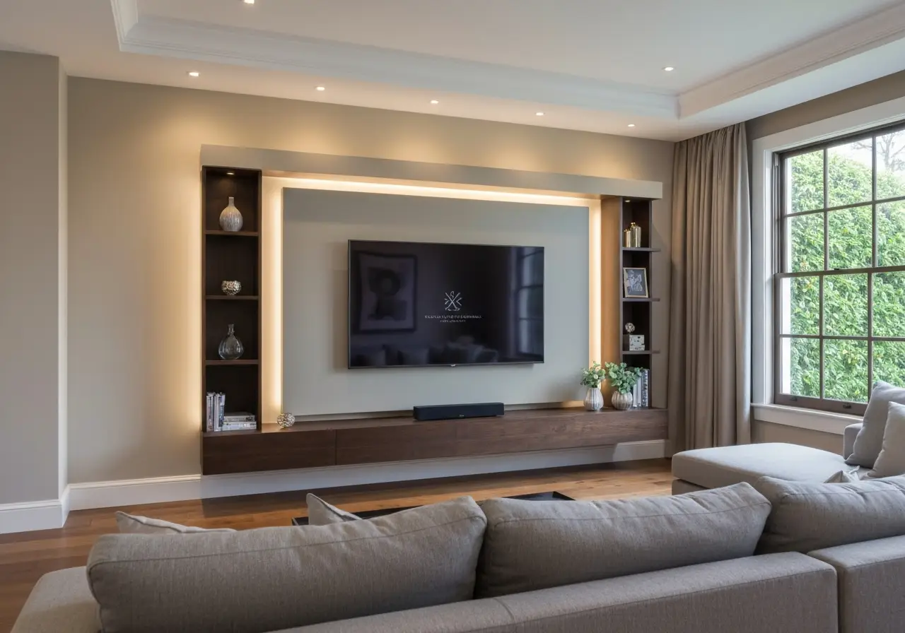 Installing LED lighting behind the TV or along the edges of the feature wall creates a soft glow that enhances evening viewing. It’s subtle but adds a luxurious ambiance.