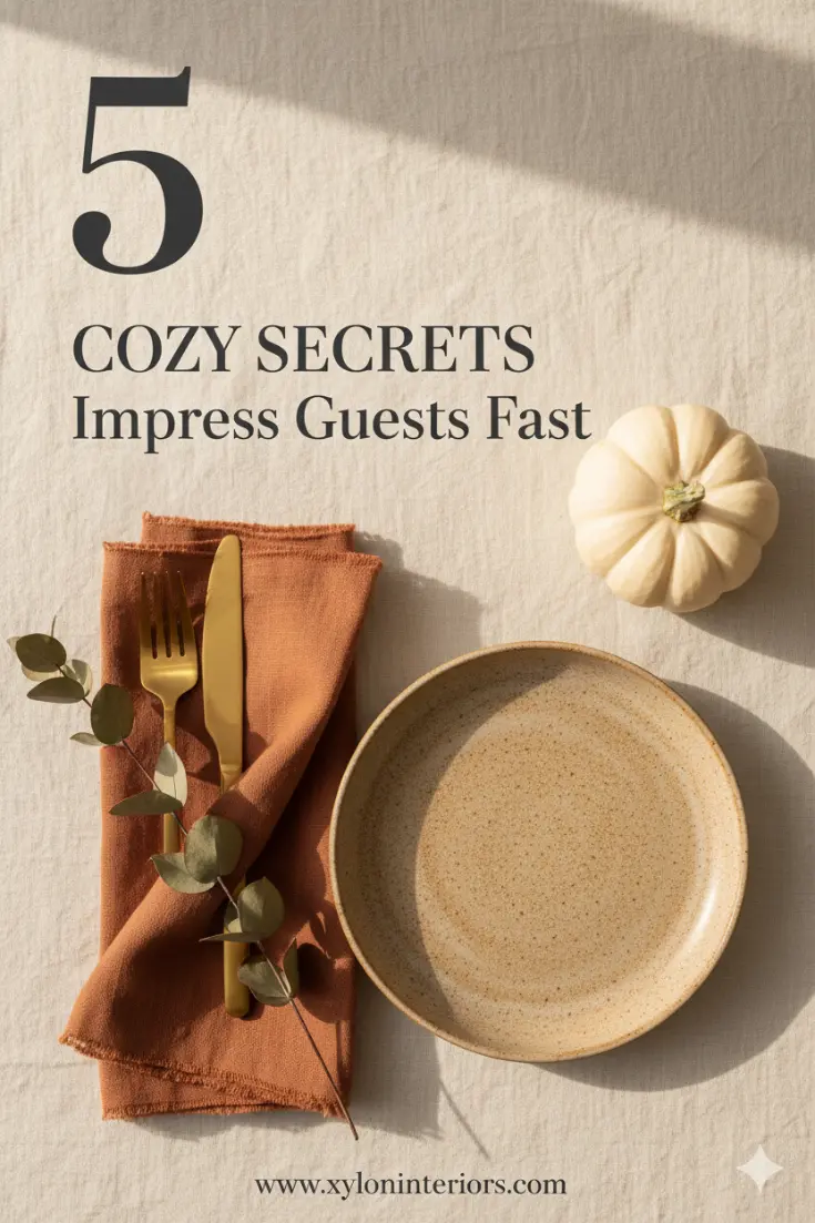 Last October I invited neighbors over for chili. I owned nothing “fall.” I grabbed two faded terracotta pillow covers (washed and ironed flat), laid them across the table like placemats, then placed white soup bowls on top. A single dark-green eucalyptus branch ran down the center. Ten minutes, zero dollars, huge impact.
