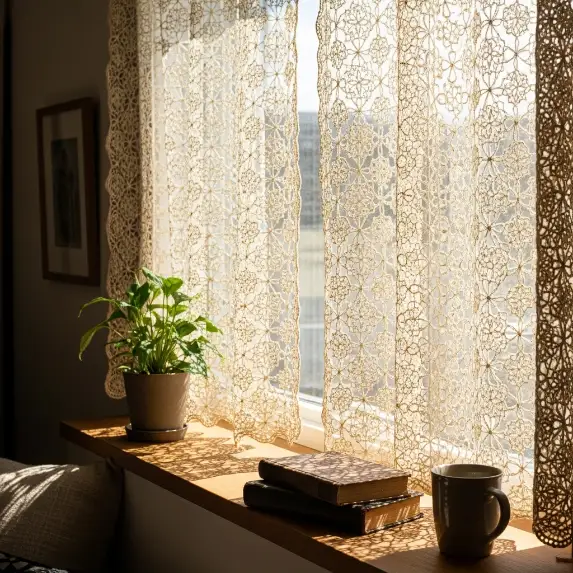 Light is the first thing we feel when we step into a room. Blinds often block it, and plain sheers can feel flat. Crochet Curtains, on the other hand, scatter daylight like confetti. The open stitches act as tiny lenses, softening harsh sun and painting playful shadows on the floor. In the evening, they glow under lamplight, turning your windows into quiet art pieces.