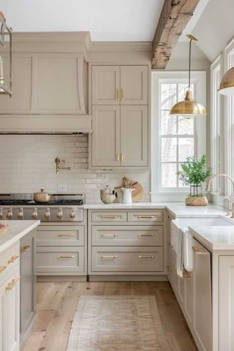 - Shaker-style doors with subtle grooves and paneling that cast soft shadows.