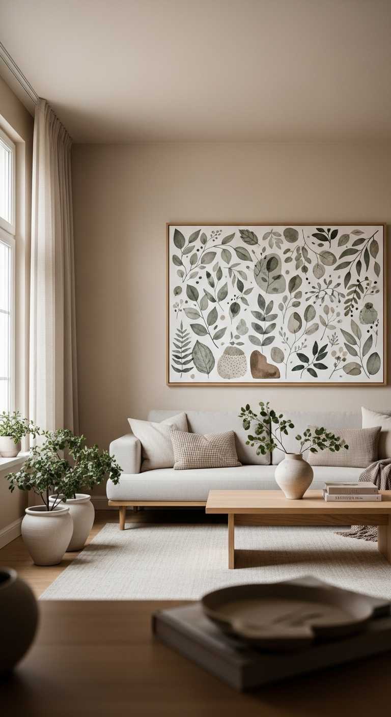- Soft neutrals for a calm, modern living room
