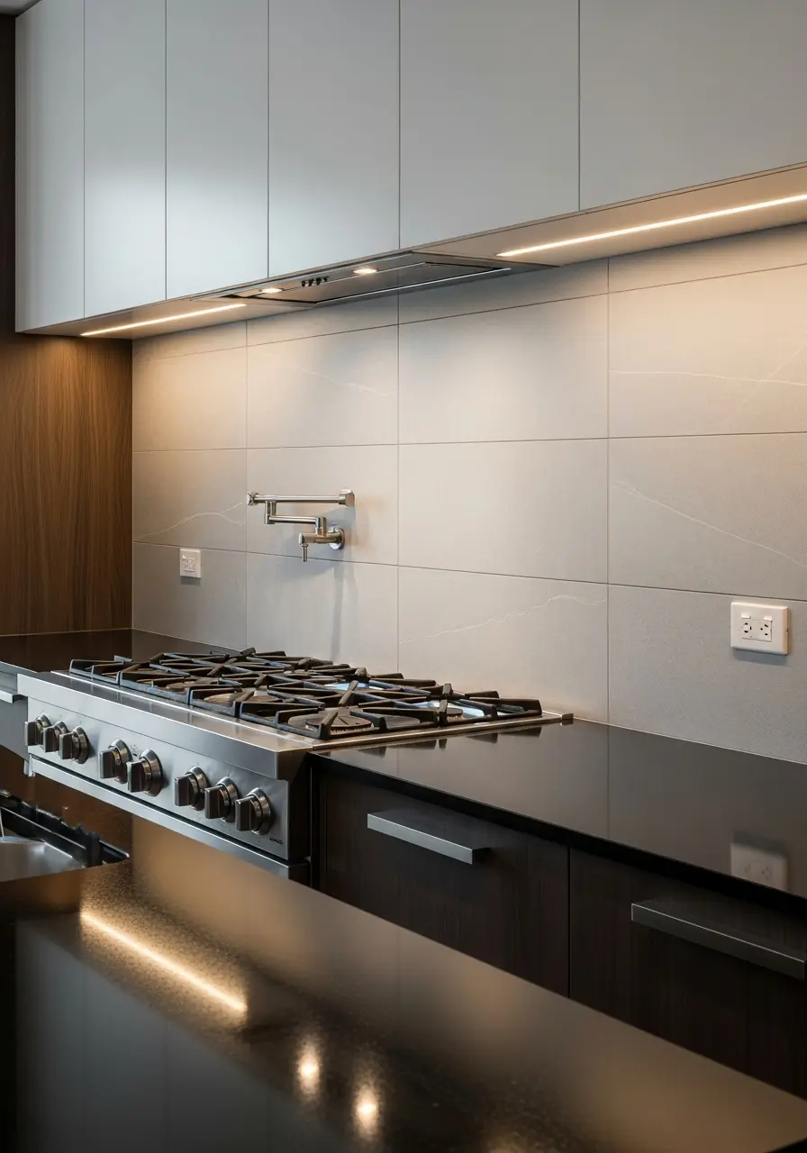 Wood as a backsplash might sound unconventional, but treated properly, it brings incredible warmth. Think oak panels with a matte finish or walnut slats that echo mid-century design. Wood softens the coolness of stone and metal, creating a cozy balance.